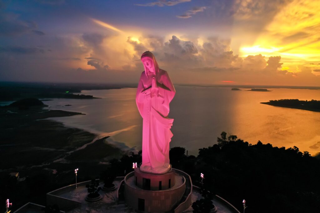 Viếng thăm tượng Đức Mẹ & cầu nguyện Leo lên phần đế / chân tượng để chiêm ngưỡng cảnh hồ Trị An và toàn cảnh trung tâm.